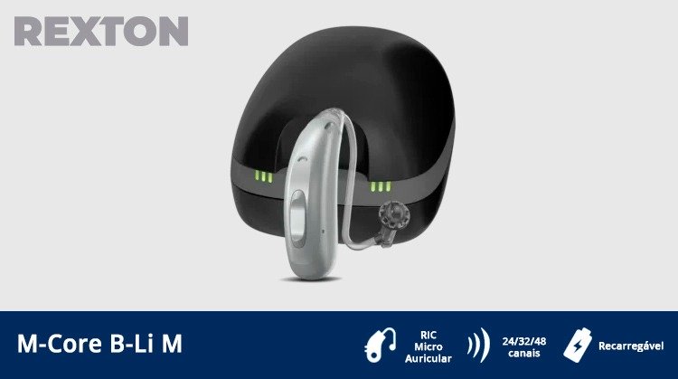 Os aparelhos auditivos M-Core B-Li são completamente recarregáveis, com até 30 horas de bateria para uma única carga.