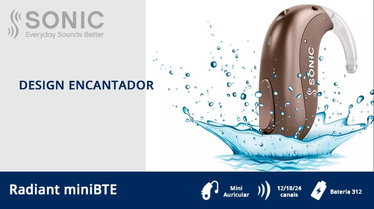 | Tipo de aparelho | Mini BTE (atrás da orelha) |